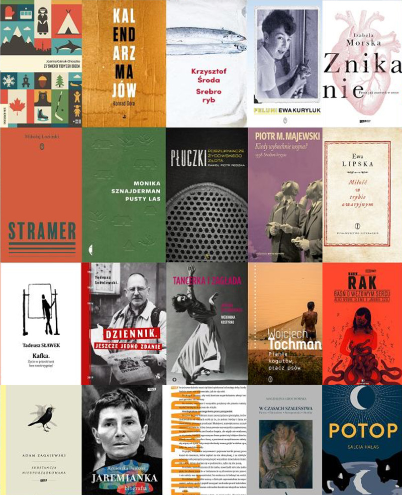 Jak co roku w nominowanej dwudziestce znalazły się wszystkie gatunki literackie: reportaże, tomy poetyckie, powieści, eseistyka i książki biograficzne. Jednak podziały gatunkowe z roku na rok mają coraz mniejsze znaczenie –informują organizatorzy nagrody.